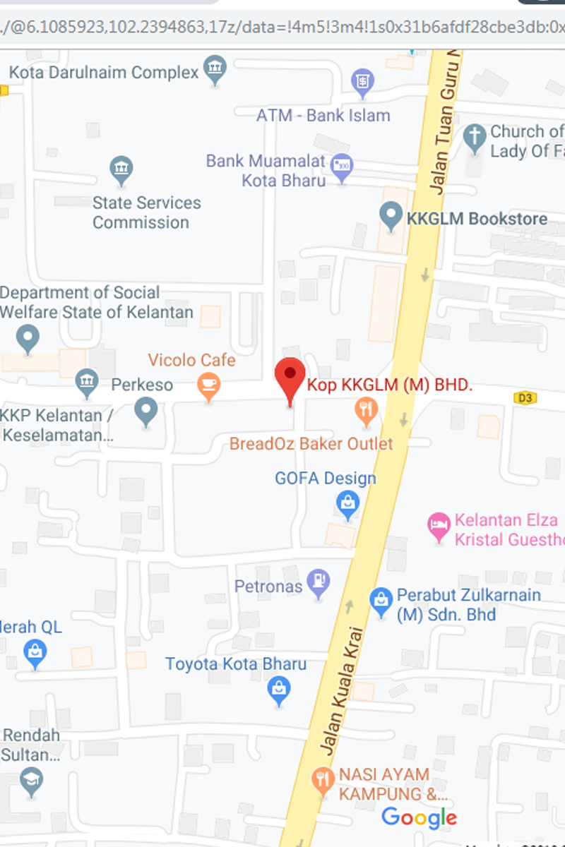 Aras 1 & 2,Bangunan Koperasi KKGLM, Lot 286,Seksyen 22, Jalan Kota Darul Naim, 15150 Kota Bharu, Kelantan